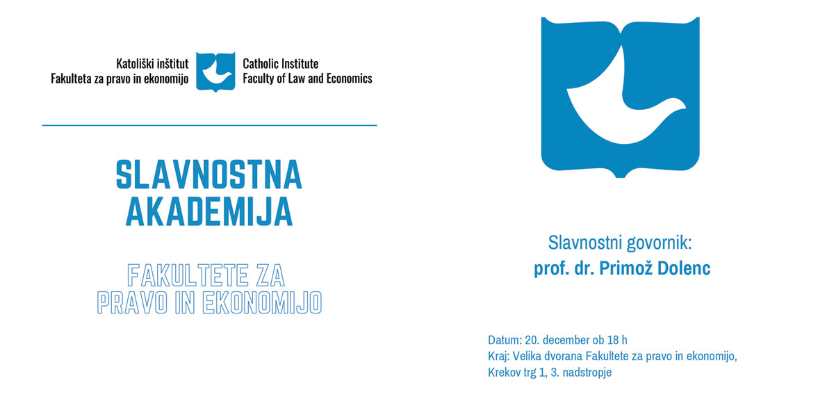 V ta namen Vas vabim na Slavnostno akademijo Fakultete za pravo in ekonomijo, ki bo 20. 12. 2023 ob 18 h v Veliki dvorani FPE. Slavnostni govornik bo naš profesor in namestnik guvernerja Banke Slovenije prof. dr. Primož Dolenc. Program pa bodo popestrili Potoški fantje, katerih član je tudi naš diplomant Darko Lavrič. Po akademiji, bomo skupaj nazdravili novemu letu naproti.